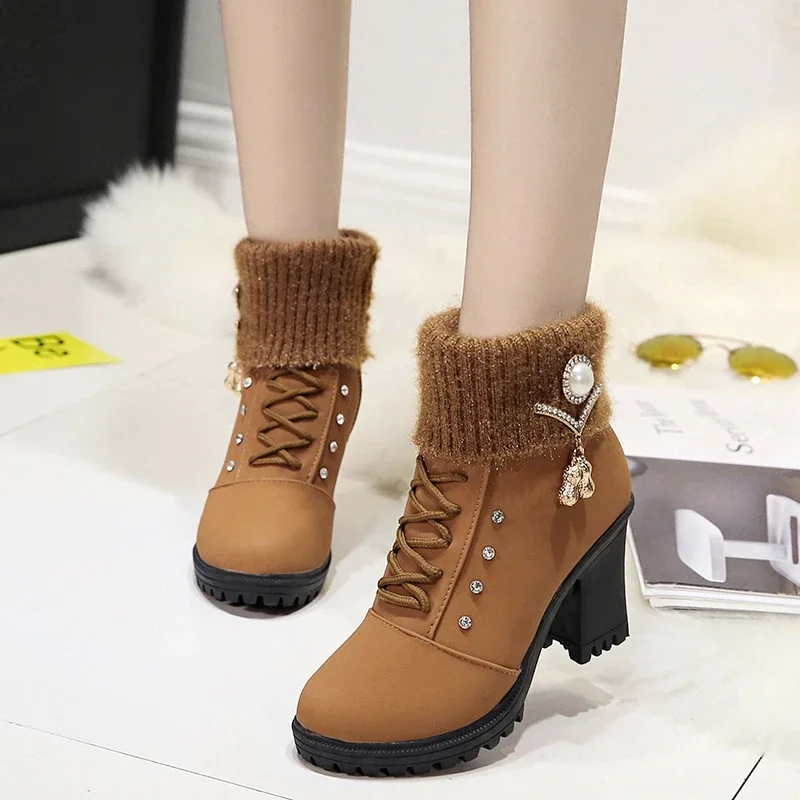 Women Boots Winter Designer High Heels Shoes for Women 2024 New Short Plush High